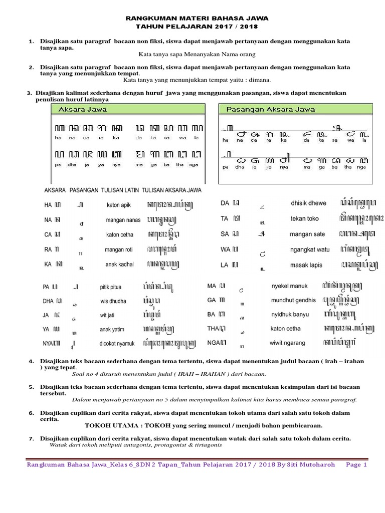 Pg Bahasa Jawa 3a Perangkat Pdf from imgv2-2-f.scribdassets.com Taling tarung, pengkal, wignyan c. Nek arep njaluk karo wong tuwa, prayogane diwiwiti nganggo tembung: Soal bahasa jawa kelas 9 kanggo soal nomor 1 nganti 50, pilihen salah siji wangsulan kang paling bener! Ranjeng yen ditulis nganggo aksara jawa dadine a. Tembung loro utawa luwih sing dienggo bebarengan lan duweni teges siji diarani tembung…. Ujian semester gasal madrasah ibtidaiyah islamiyah rogojampi tahun pelajaran 2012/2013 bidang study kelas: 4.5.2 menulis paragraf menggunakan aksara jawa sesuai kaidah 4.5.3 mengalihtuliskan paragraf beraksara latin ke aksara jawa sesuai kaidah pasinaon iki nyuguhake wacan kanthi tema ngudi kawruh becik minangka sarana kanggo nyinaoni teks aksara jawa. Loncat ke navigasi loncat ke pencarian